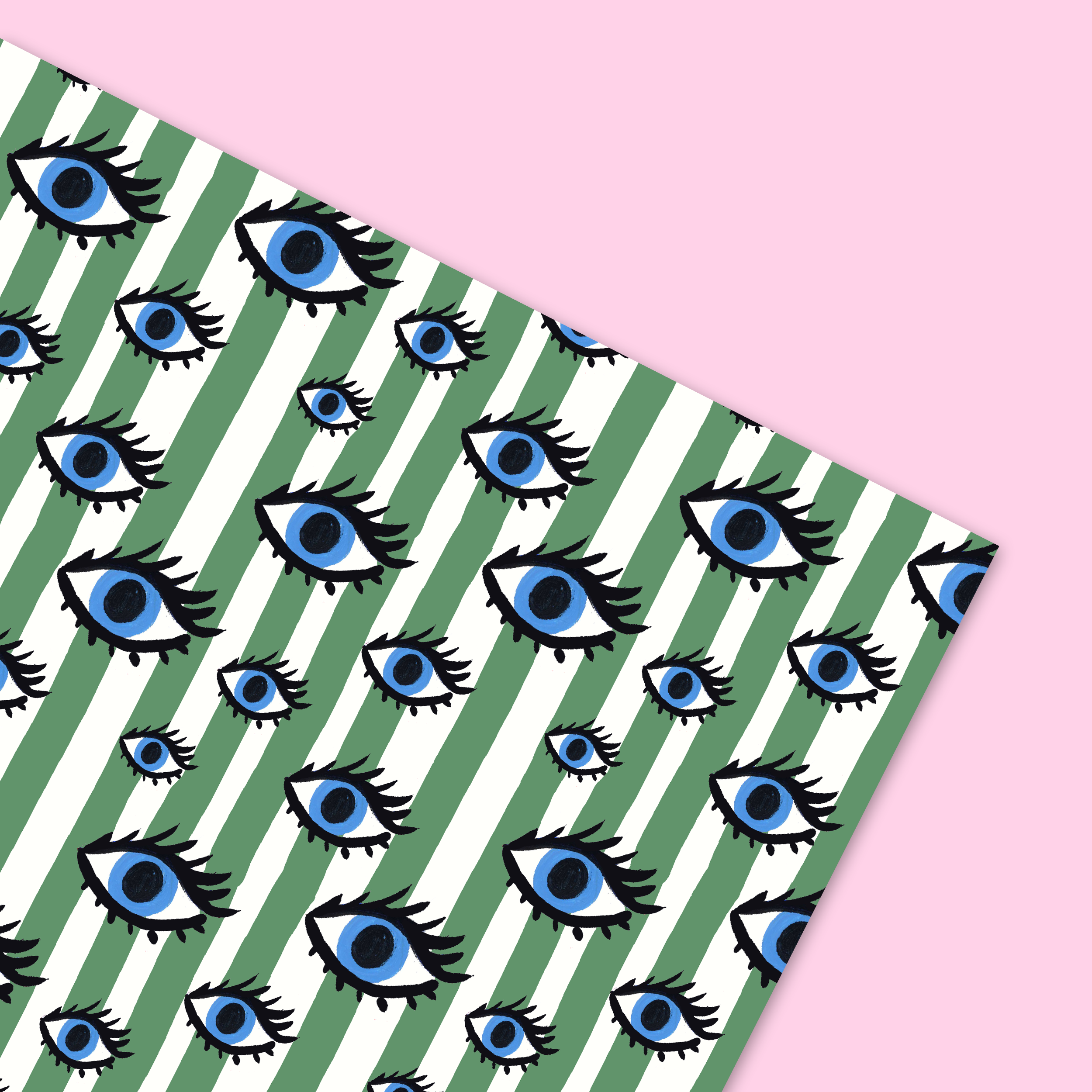 Elevate your gift giving game with our Green Striped Eyes Gift Wrap! This eye-catching wrapping paper features green stripes complemented by beautiful blue-eye illustrations, perfect for any occasion. And for an extra special touch, pair it with our sun-themed or goddess cards.